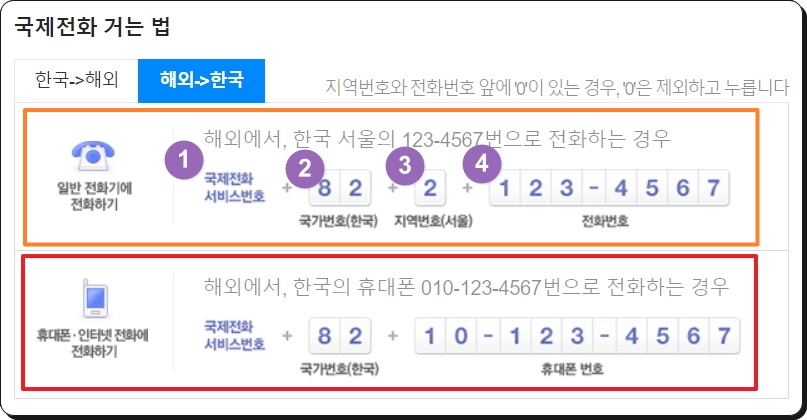 여러 가지 미국에서 한국으로 전화하는 방법 따라하기.