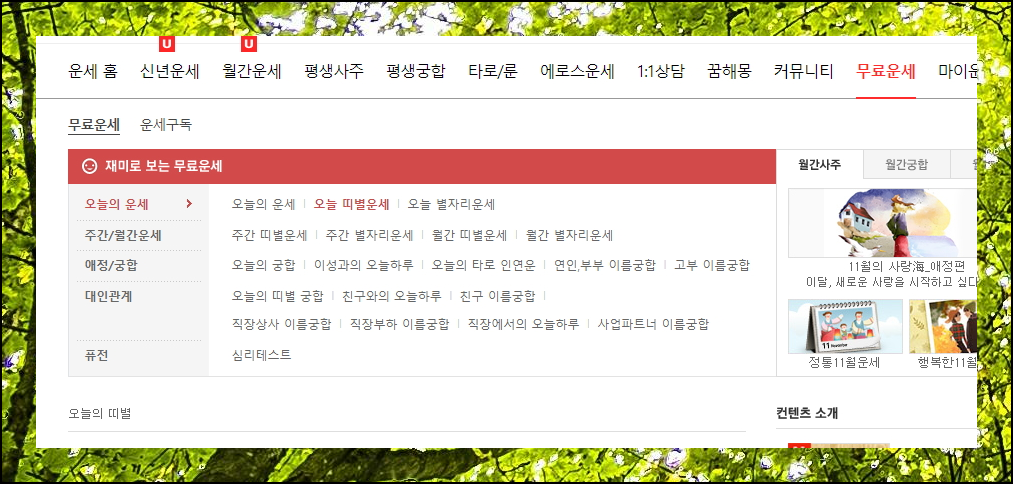 개띠와의 관계는 앞서 말씀드린 띠들에만 국한되지 않아요. 잘맞는띠 또는 그 반대를 찾고 싶다면 네이트 무료운세 사이트를 이용해보세요. 개띠인 당신의 "오늘의 띠별 궁합" 메뉴에서 자세한 정보를 확인할 수 있어요. 매일매일 변화하는 운세 정보를 통해 인연의 흐름을 파악할 수 있습니다. 이는 단순한 참고사항에 해당이 되지만 관계 개선에 도움이 될 수 있죠.