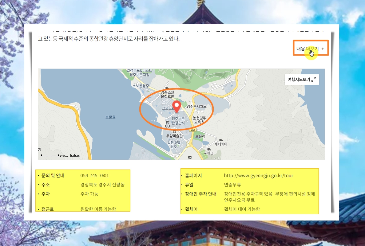 9. 여행지도를 통해 해당 관광지의 위치가 정확히 어디인지 알 수 있고요. 홈페이지, 휴일, 주소, 주차 여부 등 다양한 정보 획득이 가능합니다.