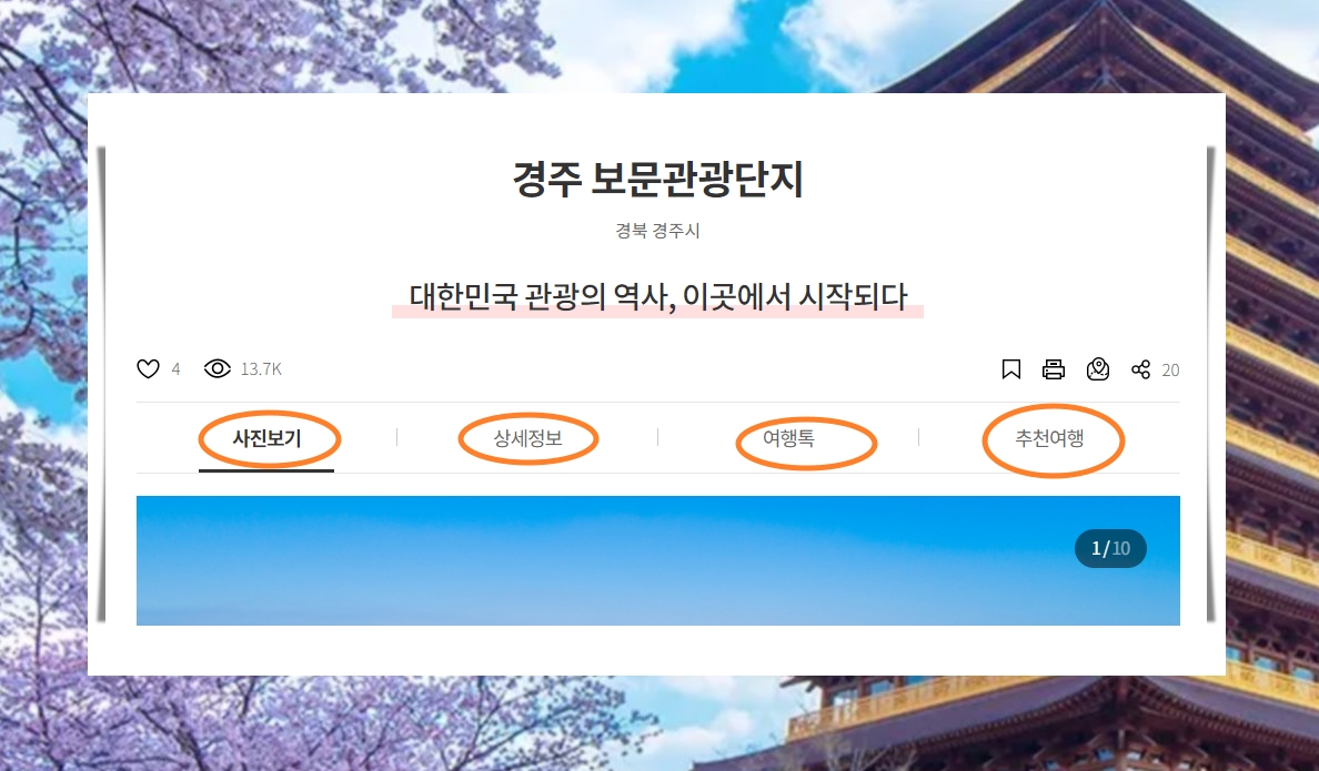 8. 개별 여행지의 명칭을 클릭해 보세요. 그럼 많은 사진과 후기, 상세 정보를 확인할 수 있는 페이지가 열립니다.