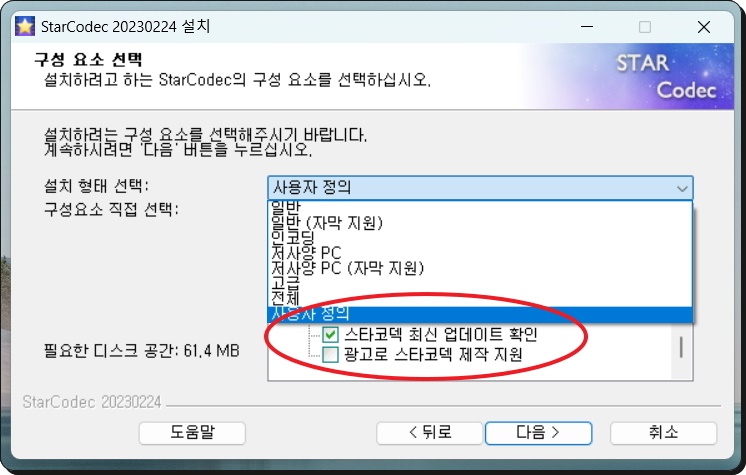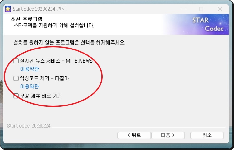 다운로드 받은 설치 파일을 실행해 보았습니다. 다른 소프트웨어와 마찬가지로 안내 사항을 읽어보고 [다음] 버튼을 클릭하면 되는데요. 구성 요소를 선택하는 단계에서는 조금 신중할 필요가 있습니다. 컴퓨터를 사용하면서 광고가 나타나는 것을 싫어하는 분이라면 맨 마지막에 있는 요소인 광고 지원 부분을 체크 해제해 주세요.