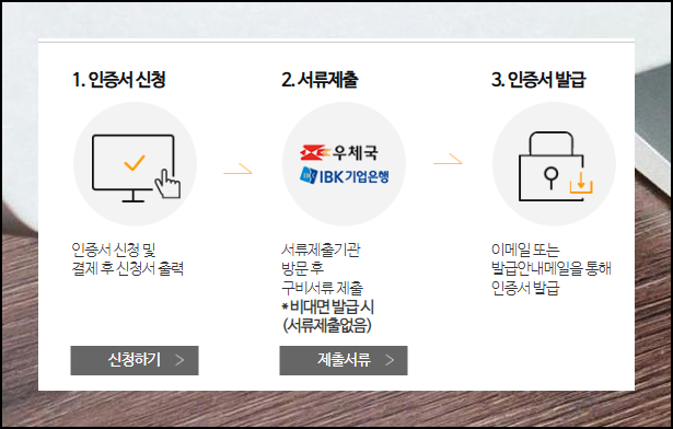 은행용 공인인증서를 받으려면 주거래 은행에 들러 인터넷 뱅킹 서비스를 신청해야 해요. 이래야 홈페이지 접속과 함께 온라인으로 여러 기능에 대한 이용이 가능합니다. 지점을 방문할 때에 신청이나 발급 방법은 담당자가 자세히 알려주는데요. 중요한 것은 신분증을 가지고 가야 한다는 것입니다.