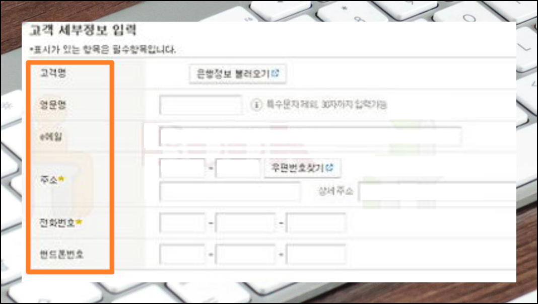 고객 정보 입력 화면에서 영문 이름을 작성하는 란이 있어요. 필수는 아니지만 미리 표기법을 알아두면 유리합니다. 주소와 전화번호는 필수 사항이니 공인인증서 발급에 꼭 필요한 내용을 정확히 기입해주세요.