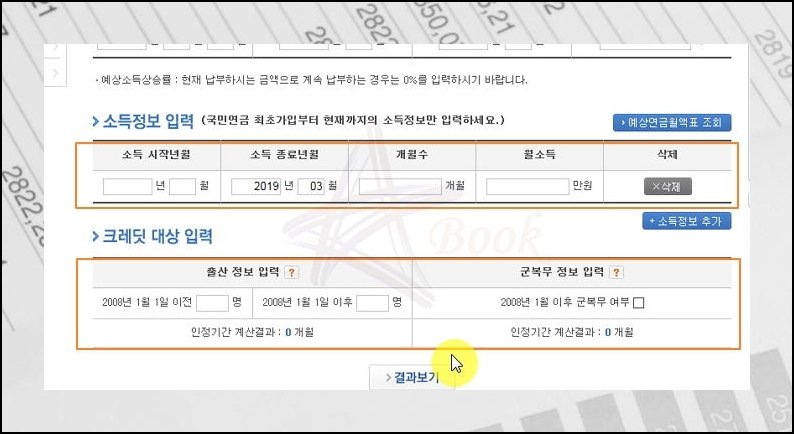 공인인증서를 갖고 있지 않더라도 방법은 있어요. 국민연금 모의계산 메뉴를 쓰면 대략적인 수령 전망을 조회할 수 있습니다. 태어난 연월, 처음 가입한 시점, 마지막 자격 상실 시점, 소득 증가 예측치를 차례로 넣어 주세요.