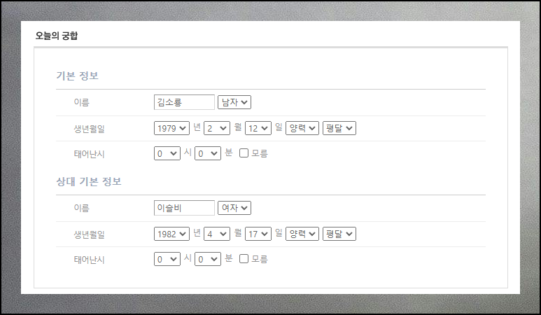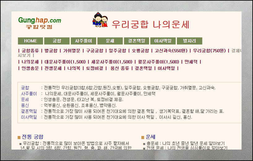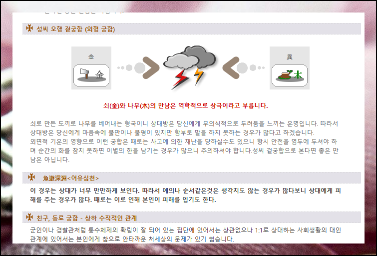 오행을 기반으로 한 과학적인 분석으로 궁합을 알아보세요. 사이트에서 제공하는 설명으로 누구나 쉽게 이해할 수 있습니다.