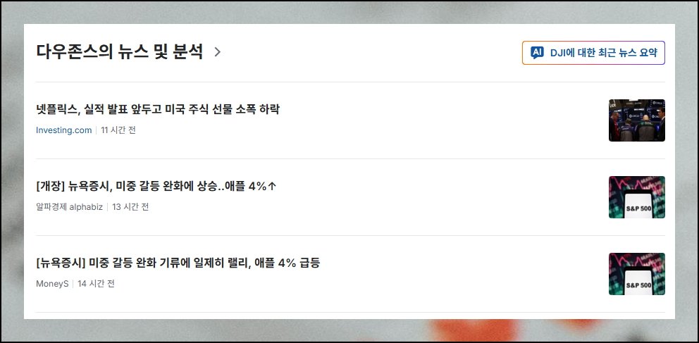 다우존스에 영향을 줄 수 있는 최신 뉴스 기사들도 함께 살펴보는 게 좋습니다.