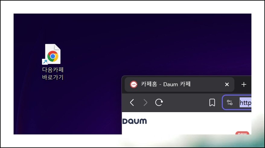 모든 작업이 끝나면 바탕화면에 새로운 바로가기가 생성된 걸 확인할 수 있어요. 이제 이 아이콘을 클릭하기만 하면 다음카페로 즉시 연결되요. 원하는 위치로 드래그해서 옮기는 것도 가능하니 편한 곳에 배치해두세요.