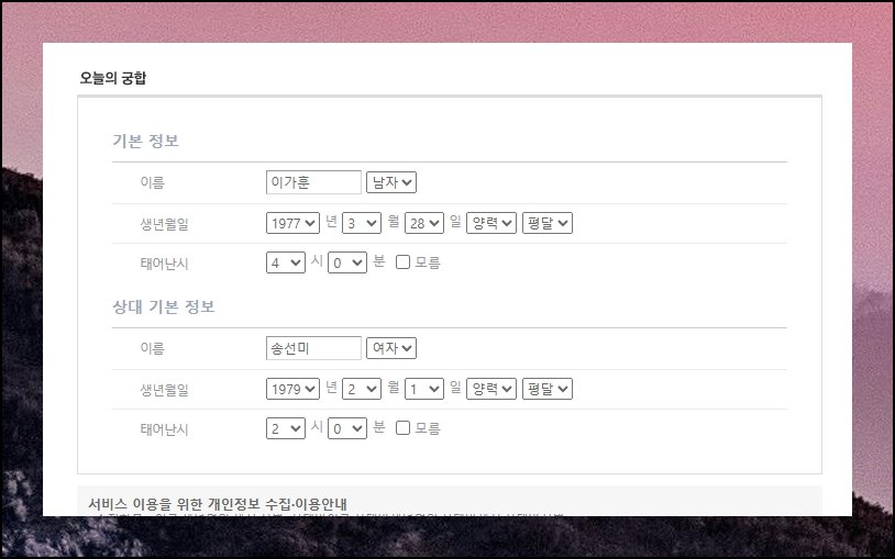 연인이나 부부 이름 궁합보기 서비스는 더욱 간단합니다. 서로의 성씨와 이름만 기입하면 되는데요. 입력 과정은 매우 단순하지만 제공되는 해석은 놀라울 만큼 구체적이에요.