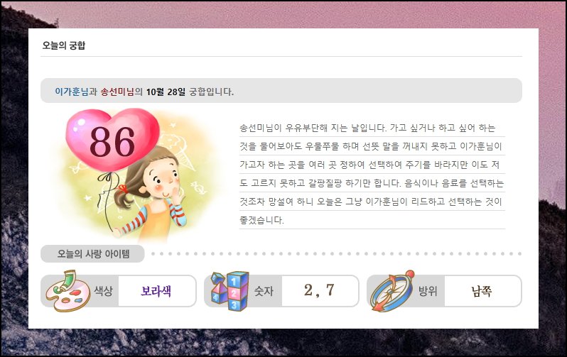 사람 사이의 궁합이 궁금할 때가 있죠. 연인이든 친구든 직장 동료든 관계의 미래가 어떨지 미리 알 수 있다면 얼마나 좋을까요. 요즘은 복잡한 절차 없이 다음 사이트에서 간단하게 확인할 수 있어요.