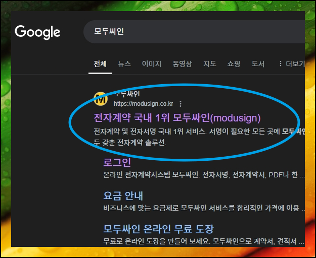 그럼 도장 만들기 프로그램을 제대로 사용하는 방법을 알려드리겠습니다. "모두싸인" 사이트를 이용하면 되는데요. 이곳은 전자계약 국내 1위 서비스라고 합니다. 그만큼 전자계약에 필요한 도장 제작 프로그램을 제공하고 있는데요. 누구나 무료로 사용할 수 있도록 해주었습니다. 물론 무료로 사용할 수 있는 대신에 프로그램을 이용하려면 로그인을 꼭 해야 해요.