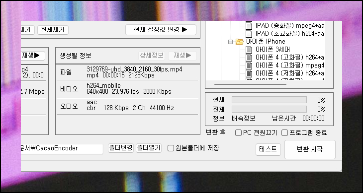 변환 시작 버튼을 누르면 됩니다. 작업 시간은 원본 파일의 크기에 따라 달라지는데요.