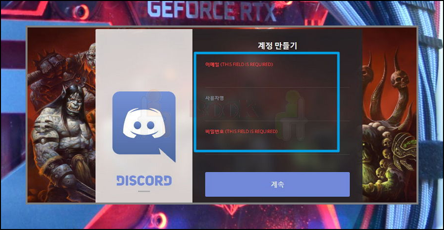 디스코드 프로그램을 설치하면 계정 만들기가 시작됩니다. 여기에서 이메일을 입력하면 되는데요. 이 다음에 본인 메일을 찾아서 인증을 하시면 됩니다.