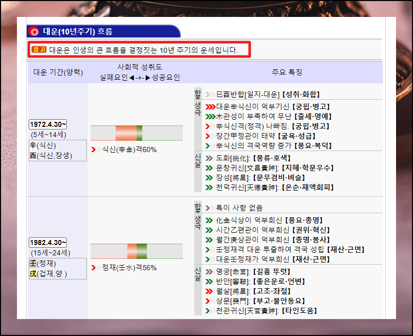 평생운을 통해서는 나이에 따라 어떤 일들이 일어나는지 알 수 있습니다.