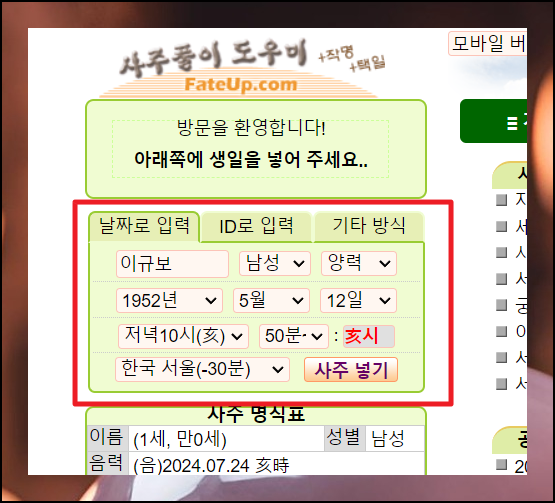 무료 만세력 사이트 소개