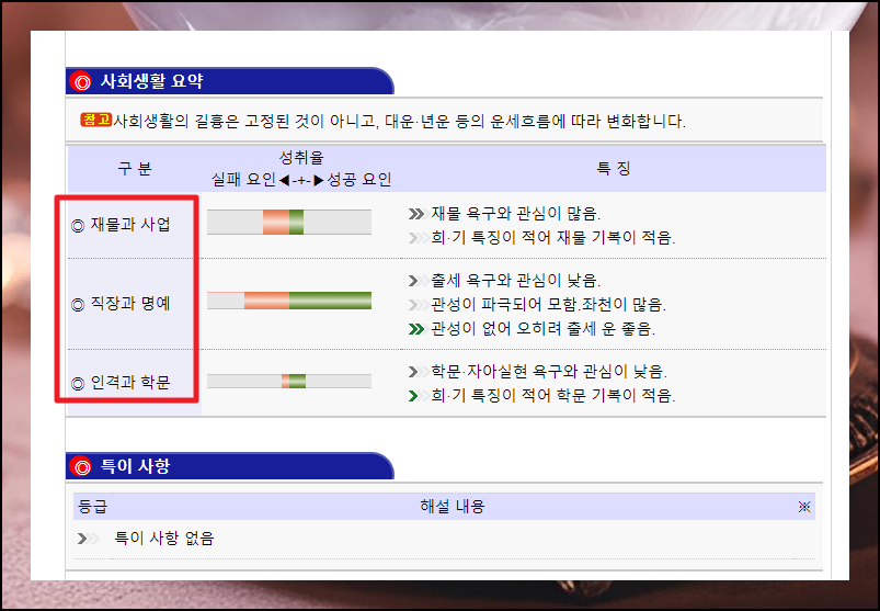사회생활을 할 때에는 경제, 직장, 사업, 학문이 관련이 있죠. 이러한 것에 대해서도 무료 만세력 서비스를 통해 풀이 보기 가능합니다.