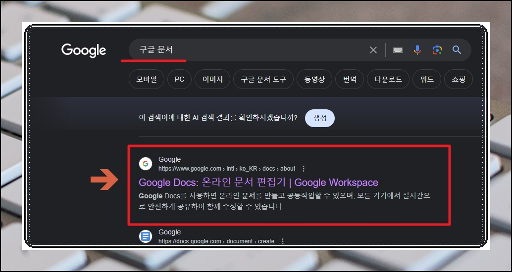 검색 엔진에서 "구글 문서"를 검색해 보세요. 그럼 온라인 문서 편집기 사이트가 나타납니다. 해당 사이트에 접속하면 우리가 찾는 문서 작성 프로그램이 나타나요.