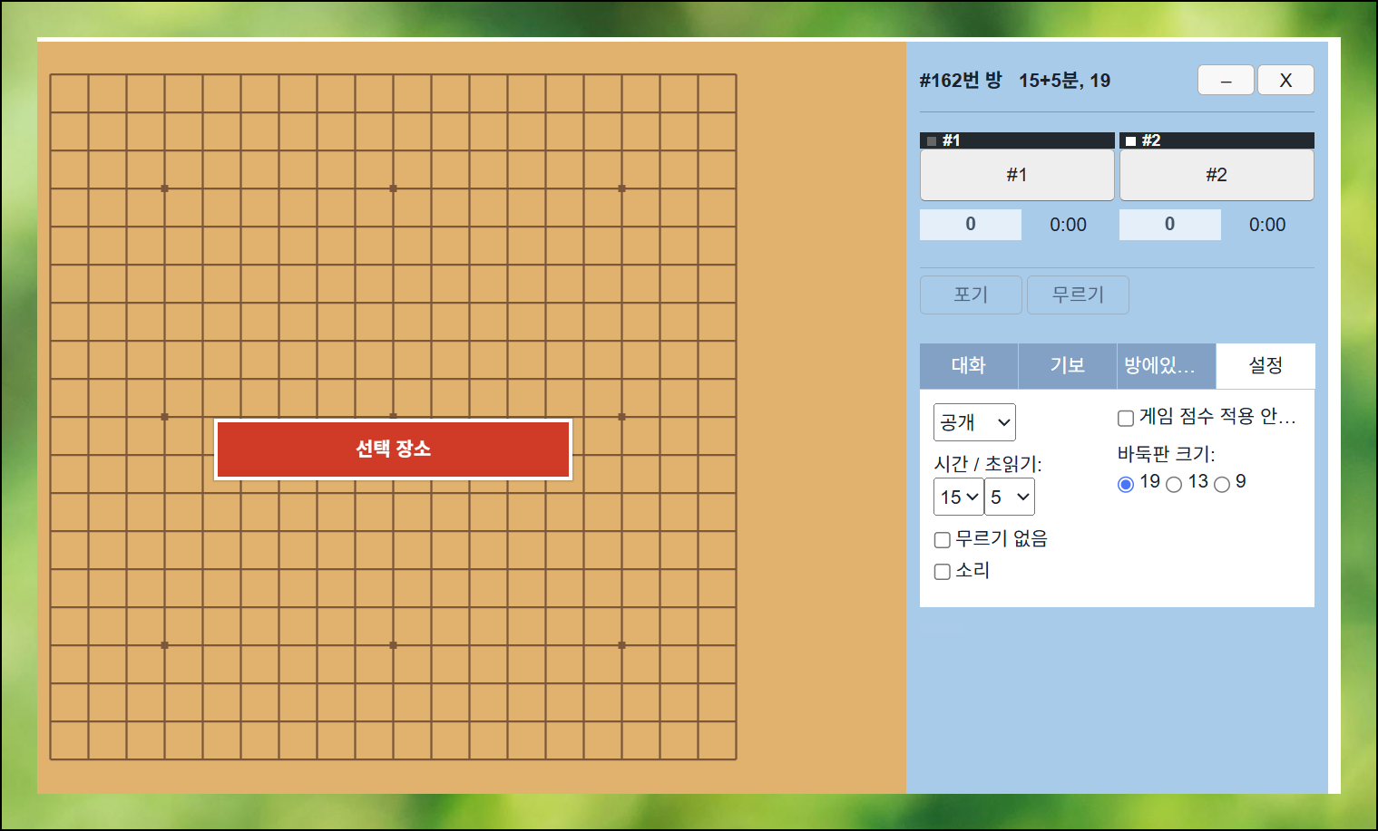 게임 방을 생성할 때 다양한 옵션을 조정할 수 있어요. 자신에게 편안한 환경으로 세팅하면 됩니다. 바둑판 크기부터 게임 규칙, 시간 제한까지 원하는 대로 설정해보세요.