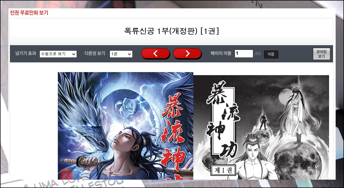 한 번에 2페이지씩 볼 수 있어 눈이 편한 뷰어를 제공해요. 묵검향 무료만화를 클릭 한 번으로 다음 페이지로 넘어갈 수 있습니다.