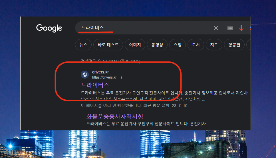 4. 이번에는 기출문제를 푸는 방법을 알려 드리겠습니다. 굉장히 많은 기출문제를 온라인 상에서 바로 프로필 수 있는데요. 당연히 정답 체크도 할 수 있습니다. 드라이버스 사이트에 접속해 주세요.