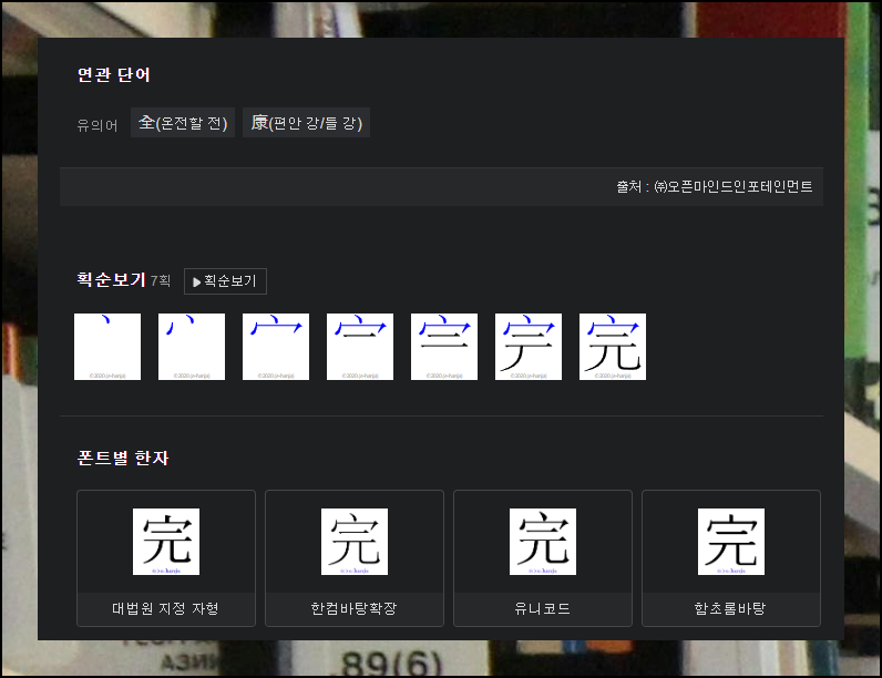기본적인 사전정보 외에도 유의어와 연관 문자를 확인할 수 있어요. 특히 글자를 쓸 때 도움이 되는 획순 정보도 제공됩니다. 이런 부가 정보들이 실력 향상에 큰 도움이 되죠.