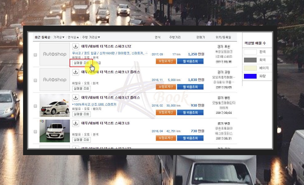 지금까지 인터넷으로 쉐보레 스파크 중고가격을 알아보는 방법을 알려드렸는데요. 매물에 대한 정렬이 가능합니다. 가격순, 연식순, 주행거리, 등록 날짜에 따라 꼼꼼하게 검색을 해보세요.