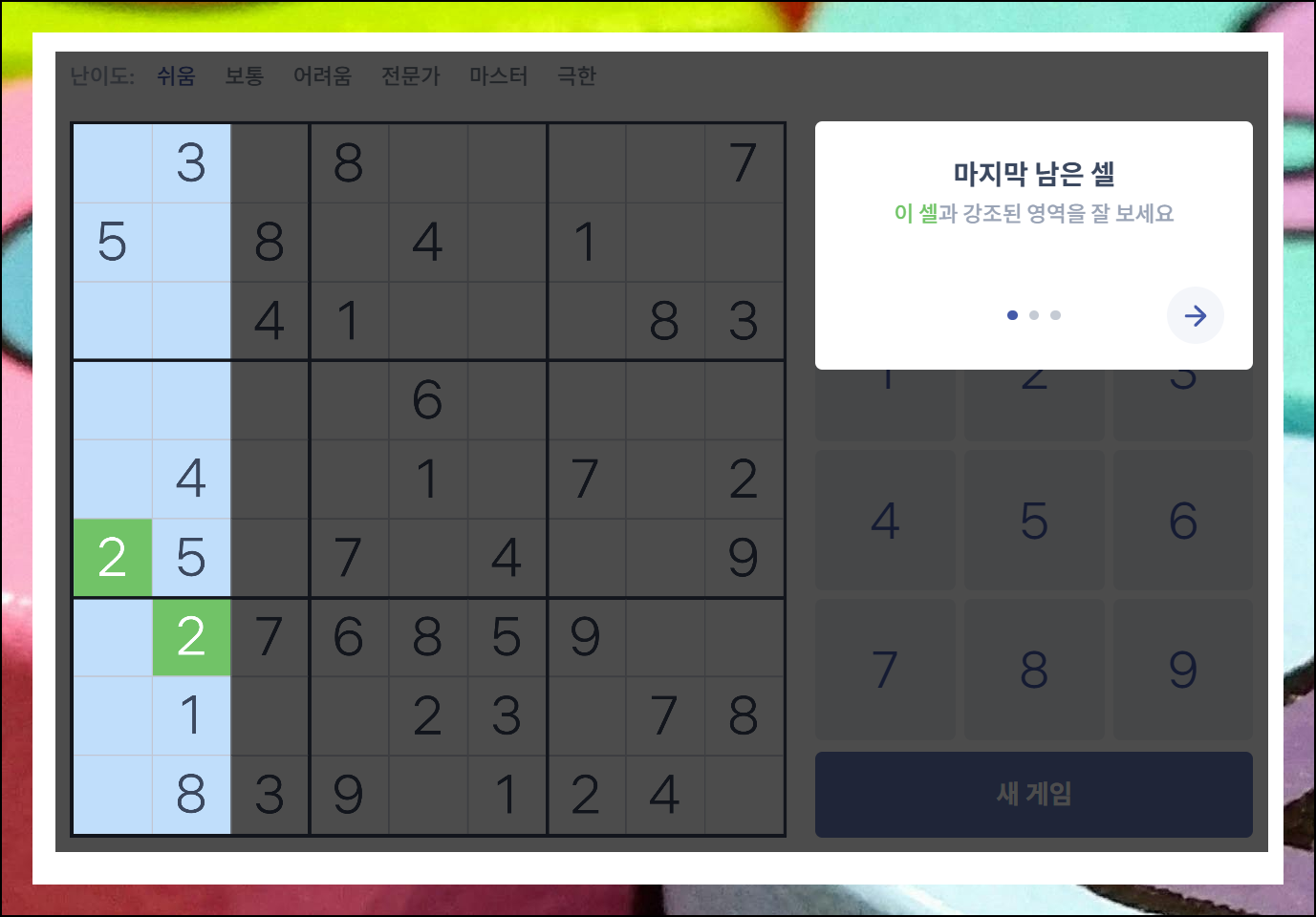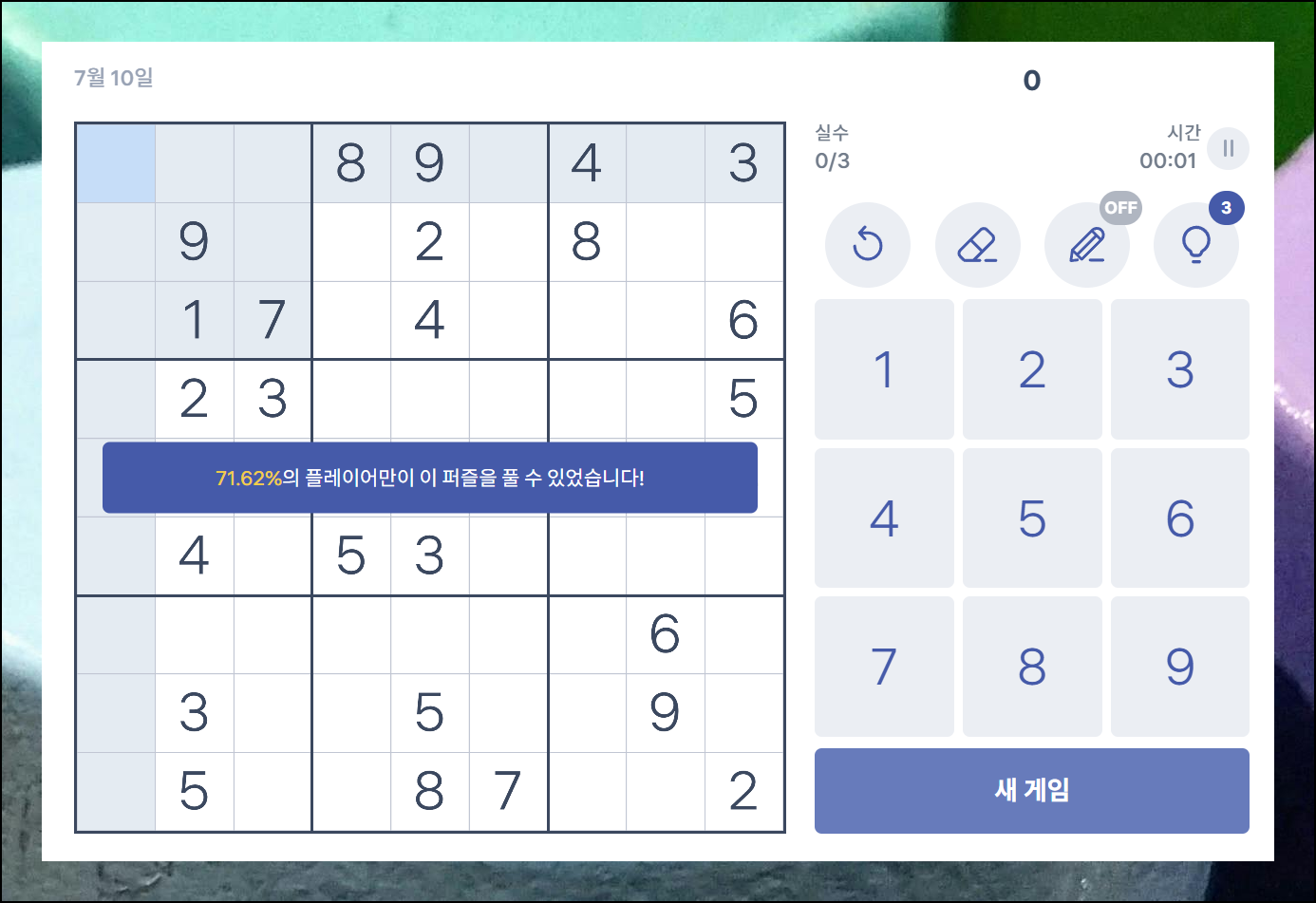 스도쿠를 더 쉽게 풀고 싶다면 메모 기능을 활용해보세요. 게임 화면에서 오른쪽에 있는 메모 기능을 사용하면 퍼즐이 훨씬 수월해집니다. 빈칸을 클릭하고 가능한 숫자들을 적어두는 방식으로 메모를 남길 수 있어요. 이렇게 하면 실수를 줄이고 나중에 숫자를 찾는 시간도 단축할 수 있습니다.