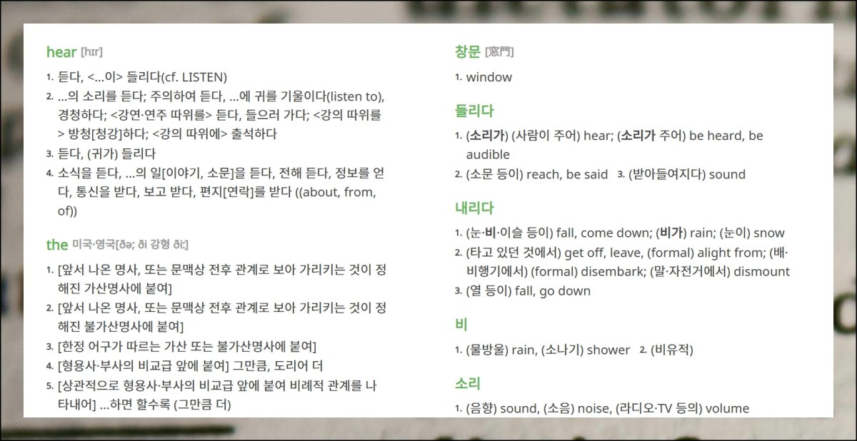 영문 번역기 역할에 그치지 않고, 영어문장을 공부할 때 사용하는 학습 도구로도 훌륭해요. 변환 결과 아래쪽을 보면 각 단어별 의미가 정리되어 나타납니다. 영어 학습 시 모르는 단어가 나오면 이런 기능이 큰 도움이 돼요. 클릭하면 상세 설명 페이지로 연결되어 체계적 습득이 가능합니다. 단순히 뜻만 알려주는 게 아니라 깊이 있는 이해까지 도와주는 똑똑한 서비스예요.