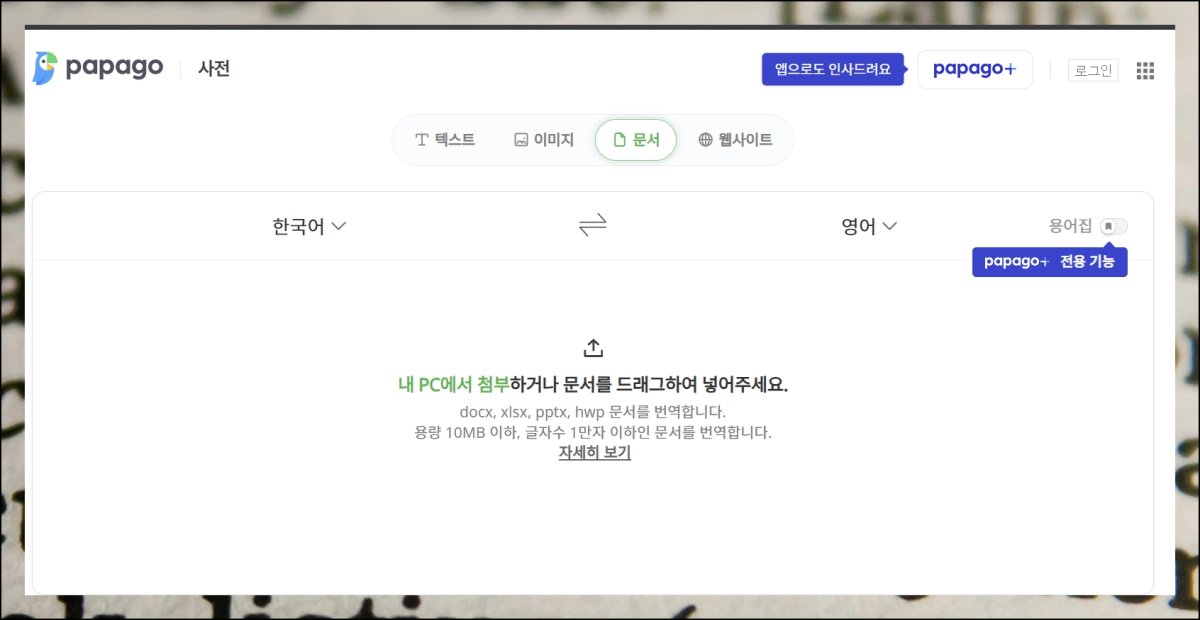 긴 영어문으로 구성된 자료를 처리해야 할 때 파파고의 진가가 드러나요. 영어문장 번역기의 메뉴를 선택하고, 중앙 화면에 파일을 올리기만 하면 됩니다. DOCX, XLSX, HWP, PPTX 형식을 모두 지원해서 편리해요. 파일 크기 10MB와 텍스트 1만 자 제한이 있으니 미리 확인하세요. 업무 효율성이 크게 향상되는데요. 특히 해외 자료를 다루는 분들에게 유용한 도구가 될 거예요.