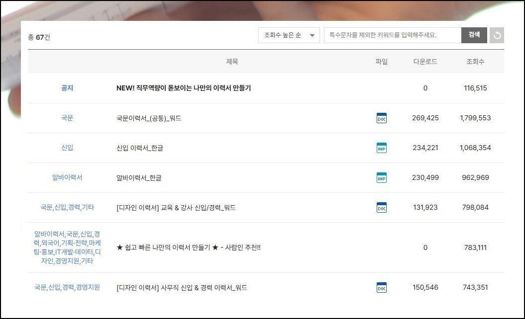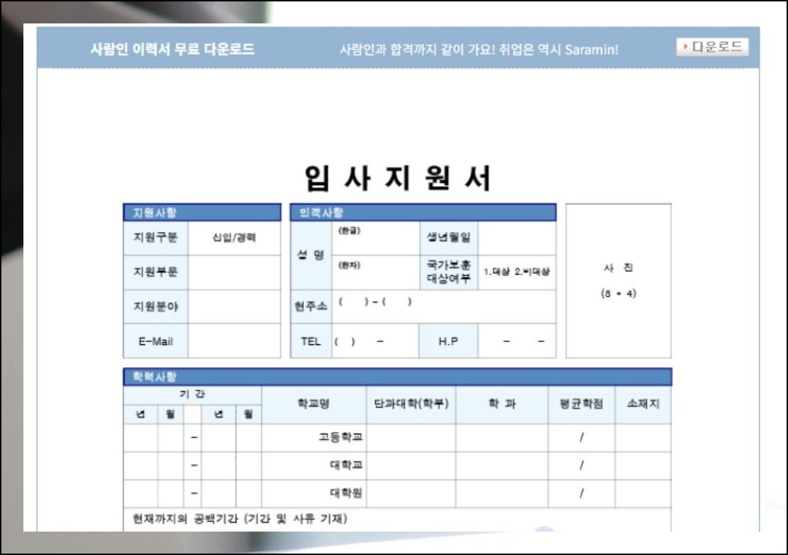 이력서 양식 무료 다운로드 받는 법, 한글 영문 무료다운