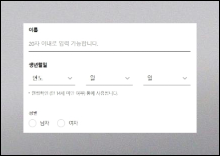 서비스 이용에 필요한 기본 개인정보를 입력하는 단계예요. 실명과 생년월일, 성별 정보를 정확하게 입력해주시면 됩니다.