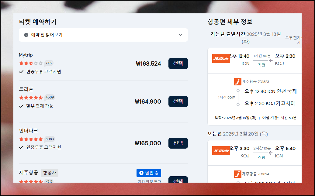 예산을 크게 절약할 수 있습니다. 온라인 플랫폼을 통해 일본 비행기표 예약을 진행하면 날짜별, 지역별 최저가를 한눈에 확인할 수 있어요.