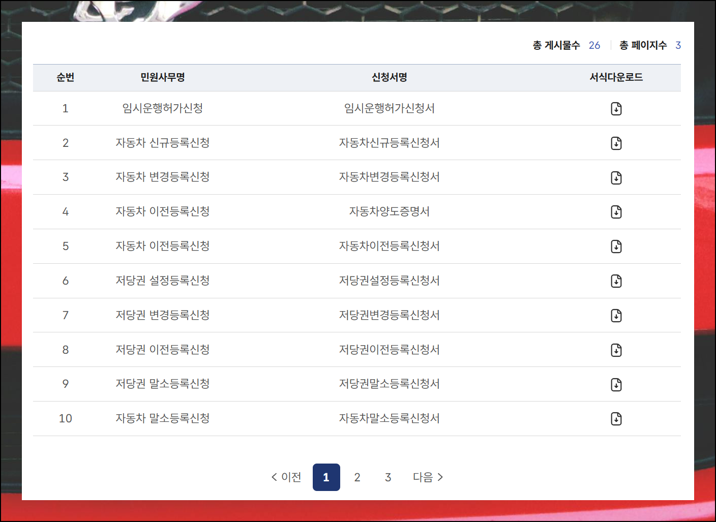 게다가 매매계약서 양식을 포함한 17가지 자동차 관련 무료 서식도 함께 받아보실 수 있습니다. 차량 등록이나 이전 절차를 진행할 때 요긴하게 사용할 수 있어요.