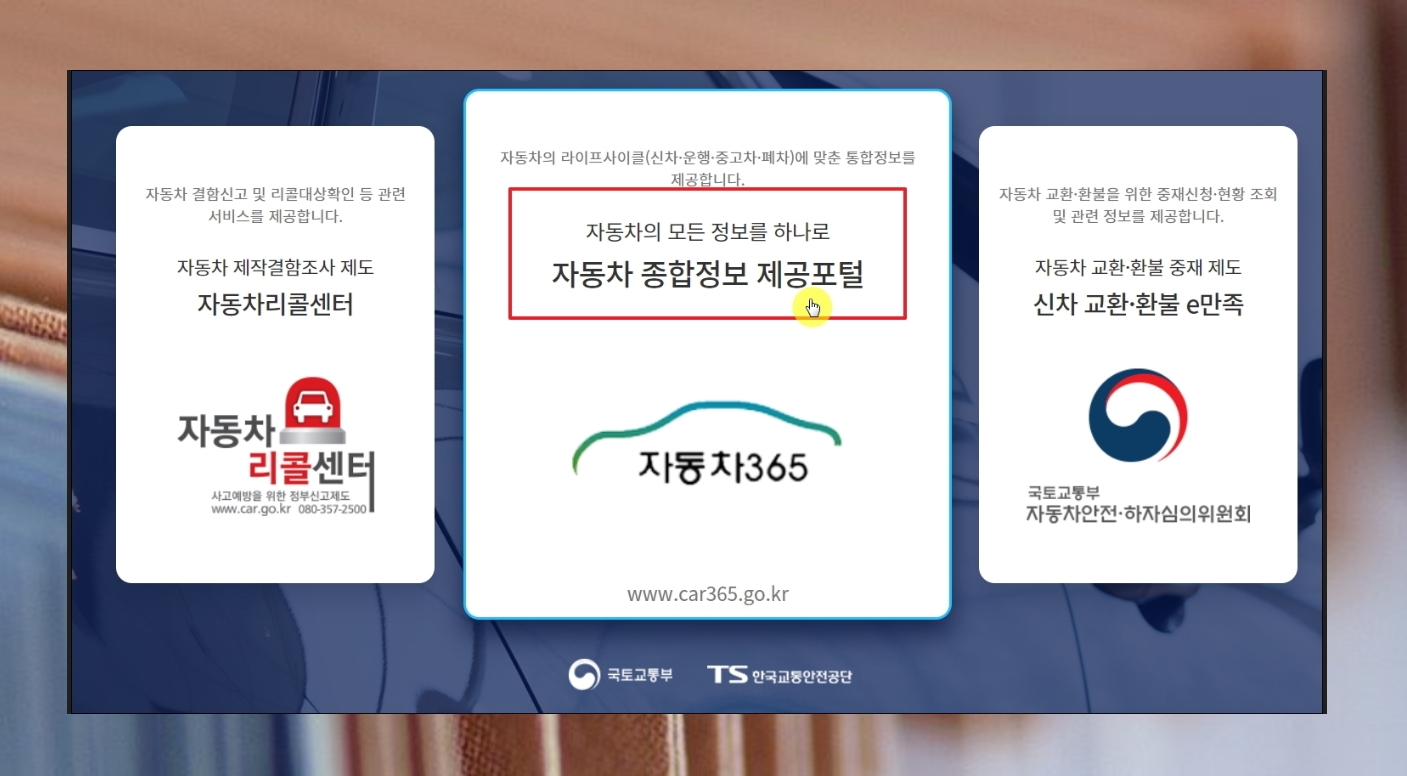자동차365 사이트에 접속하면 종합정보 제공포털로 접속해 주세요.