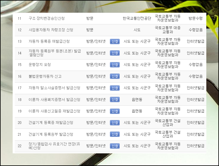 민원안내 목록에서는 양도증명서와 관련된 인터넷 신청 서비스를 제공하고 있습니다. 자동차 소유권 변경에 필요한 다운로드와 접수가 동시에 가능해요. 직접 방문할 필요가 없어 시간과 교통비를 아낄 수 있습니다.