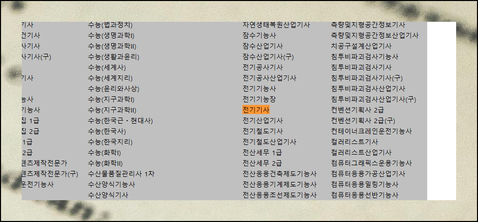 사이트 내에서 전기기사 자격증을 쉽게 찾는 방법을 알려드릴게요. 키보드에서 Ctrl과 f키를 동시에 누르면 검색창이 나타나는데요. 여기에 "전기기사"라고 입력하시면 바로 찾을 수 있습니다. 아주 간단하죠. 이러한 단축키 활용은 시간을 크게 절약해줄 수 있어요.