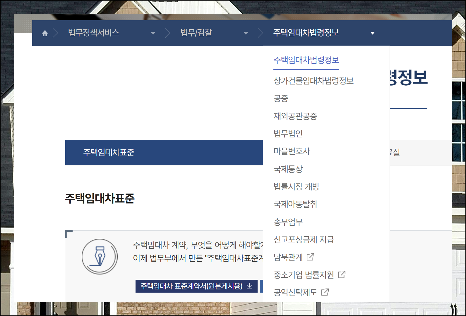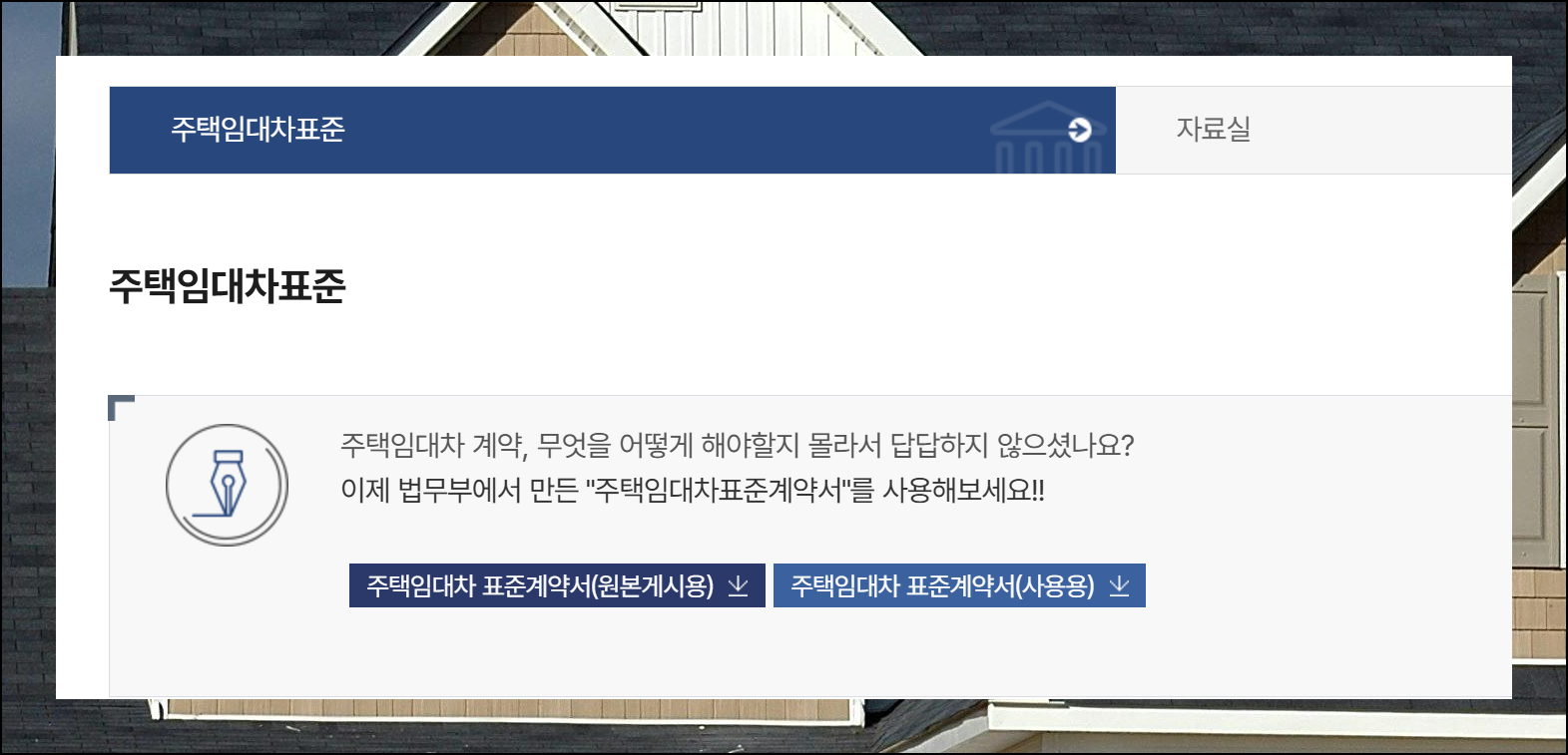 법무정책서비스 페이지에서는 건물 종류에 따라 다른 양식을 제공해요. 아파트나 빌라는 주택 임대차 법령정보를, 상가는 상가건물 임대차 법령정보를 선택하면 됩니다. 각각의 무료 사용이 가능한 전세계약서 양식이 준비되어 있어요.