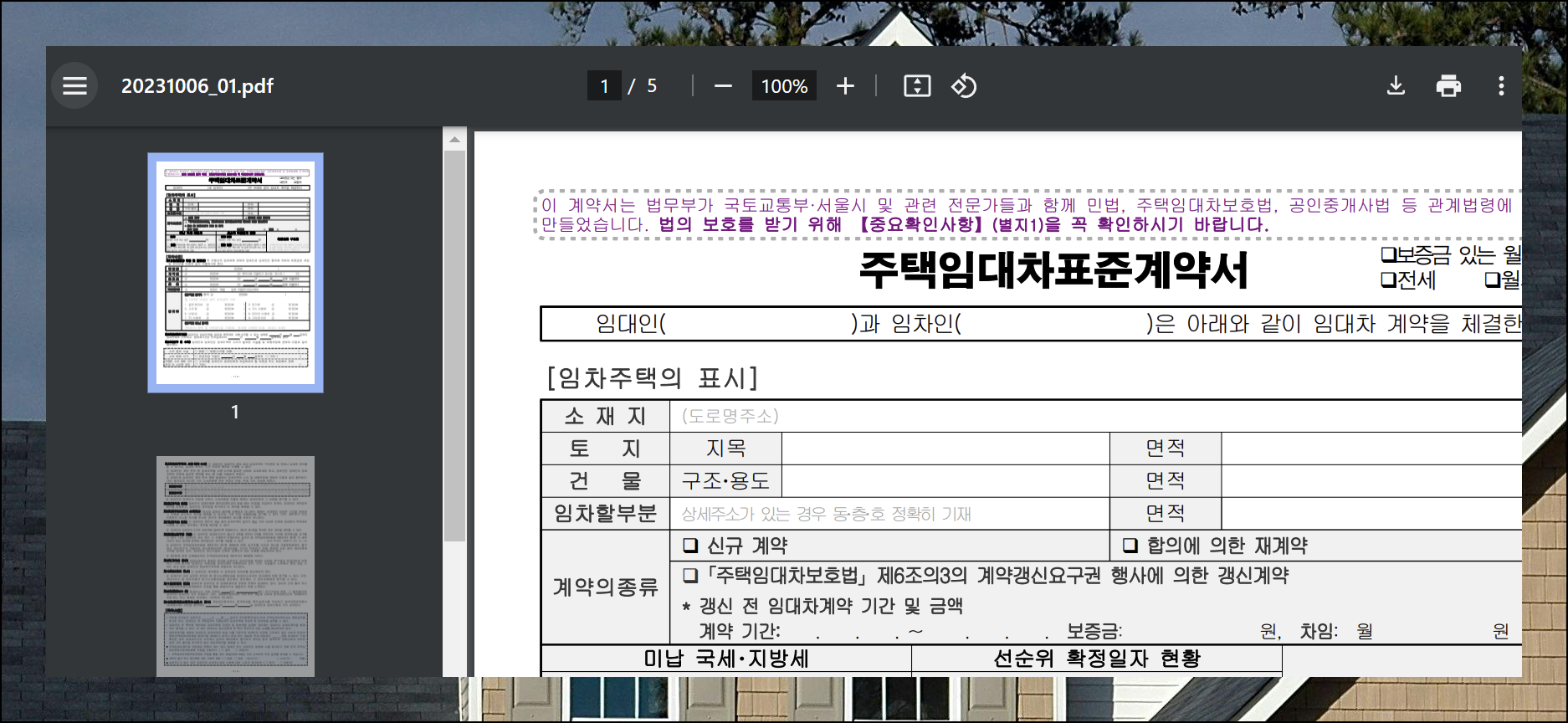 법무부 공식 웹사이트에서 가장 최근에 업데이트가 된 표준 양식과 전세계약서를 무료로 내려받을 수 있어요. 매년 개정되는 법률을 반영하여 양식이 업데이트됩니다.