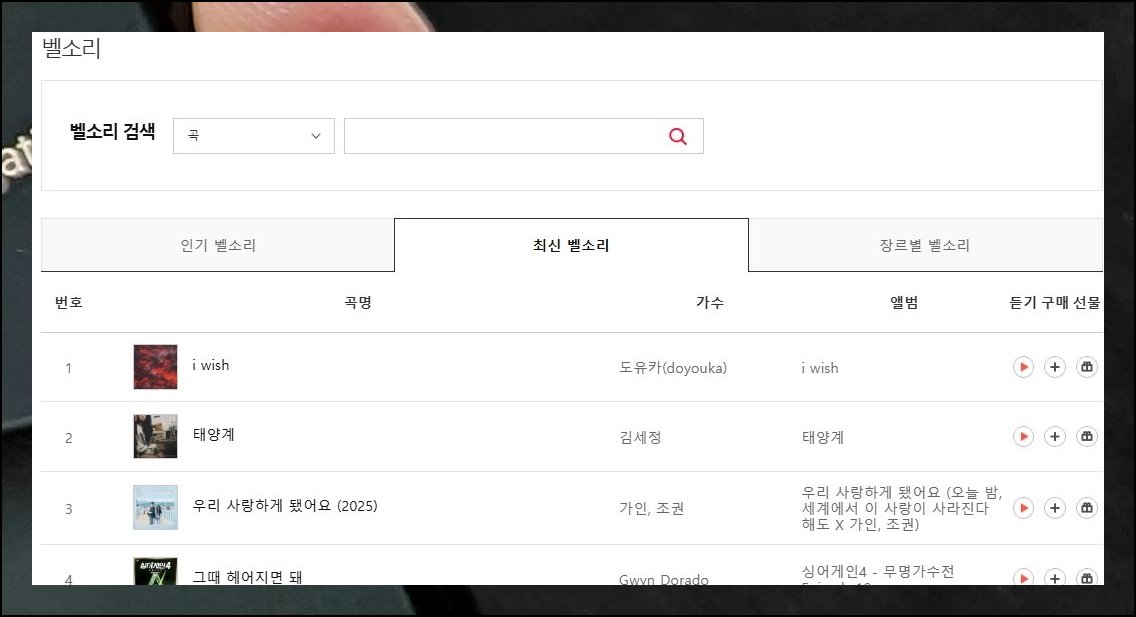 리스트에서 앨범 커버 옆 플레이 버튼을 탭하면 시청용 창이 나타납니다. 클라이맥스 파트와 도입부, 마무리 부분 세 구간을 나눠서 감상이 가능해요. 꼼꼼히 청취한 후 괜찮다 싶으면 결제 버튼을 눌러 진행하세요. 약간의 비용이 들지만 공식적으로 벨소리 등록을 할 수 있습니다. 지인에게 추천 음원을 선물하는 것도 되니 깜짝 선물을 준비한다면 참고해볼 만해요.