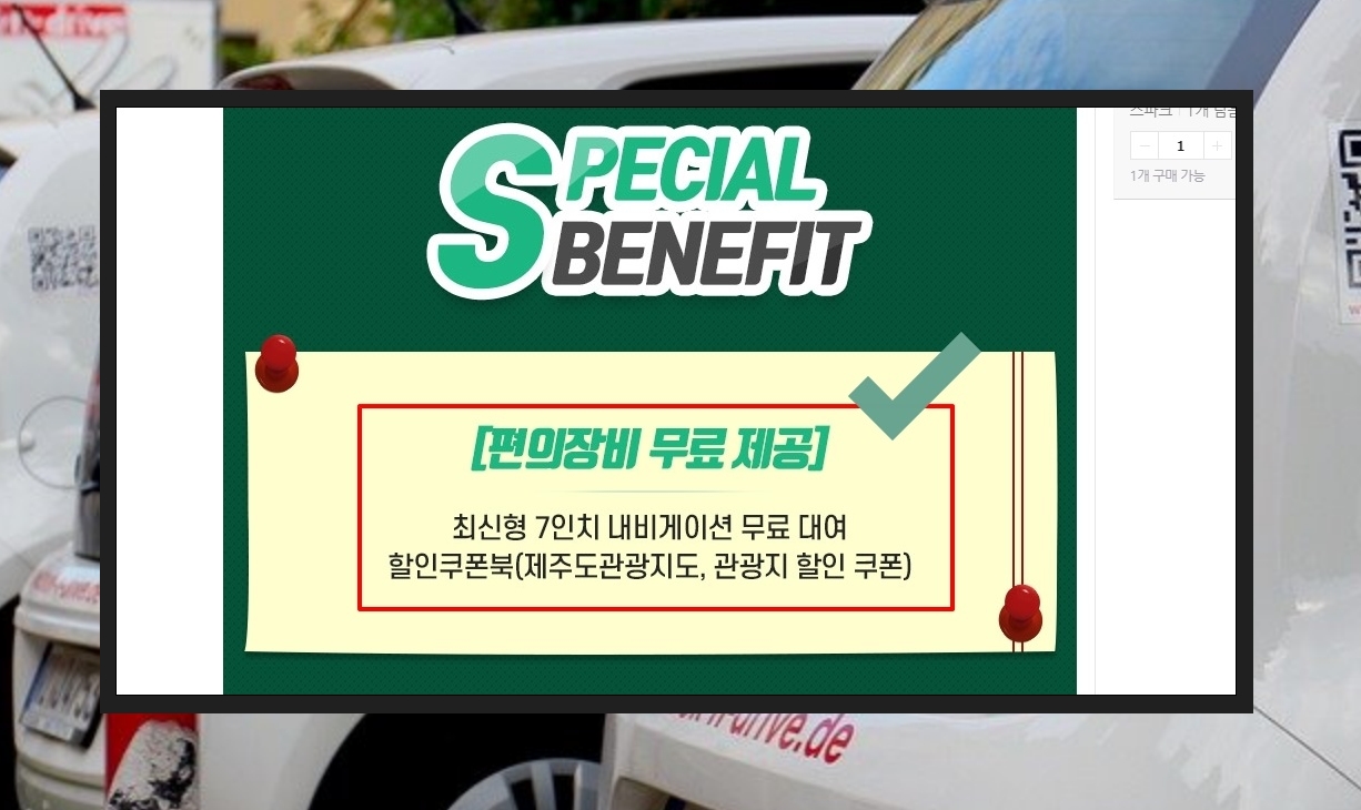 렌트카 업체를 선택할 때에는 요금과 더불어 편의장비를 제공하는지도 알아볼 필요가 있습니다. 일부 업체의 경우 내비게이션을 무료로 대여하거나 제주도 관광에 유용한 할인 쿠폰북을 제공하기도 합니다.