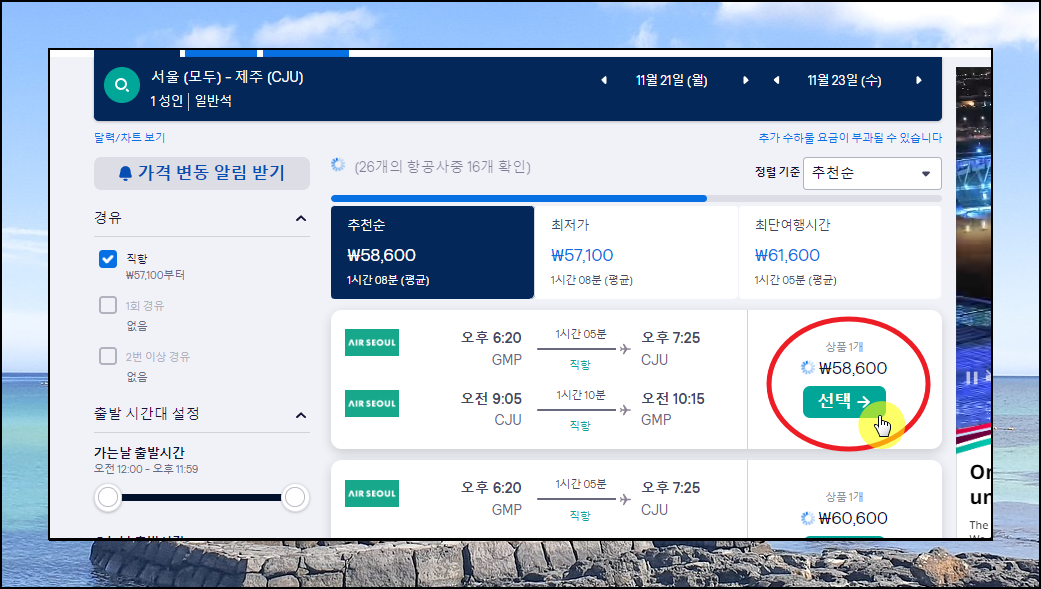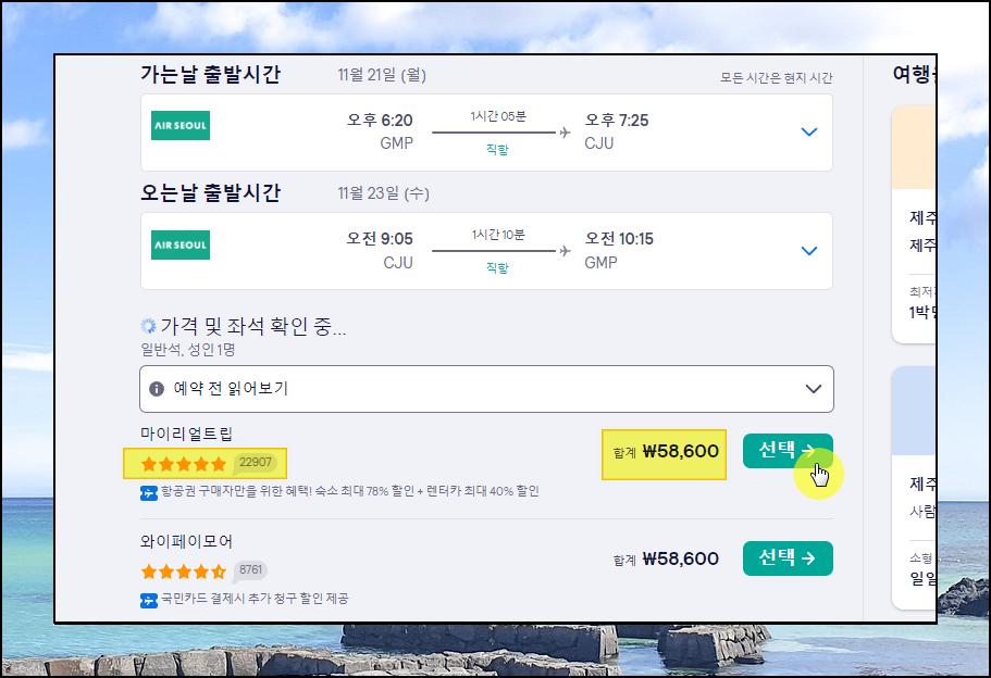 제주도 항공권 가격비교사이트를 이용한 최저가 티켓 구하기.