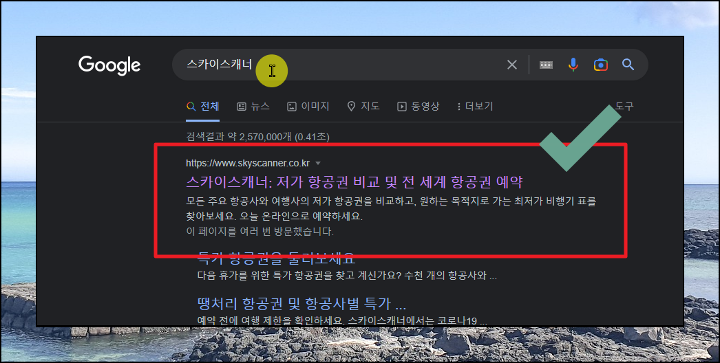 그럼 제주도 항공권 가격비교사이트를 활용하여 저렴하게 나온 티켓을 찾는 방법을 알려드리겠습니다. 요즘에는 이러한 가격비교사이트가 여러 가지 있는데요. 이 중에서 저는 규모가 있는 스카이스캐너를 이용합니다. 규모가 큰 만큼 방대한 항공권 정보를 다루기 때문인데요. 이러한 정보가 많을수록 최저가 티켓을 찾는 데에 유리하다고 생각합니다.