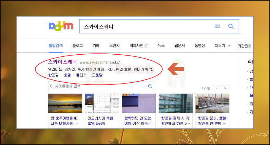 7. 다른 항공사 예약은 이렇게 하세요. 또 한번 예약 사이트를 선택해 주세요. 이와 같이 출발할 때의 항공사와 돌아올 때의 항공사가 다른 경우에는 예약을 2번 해야 합니다.