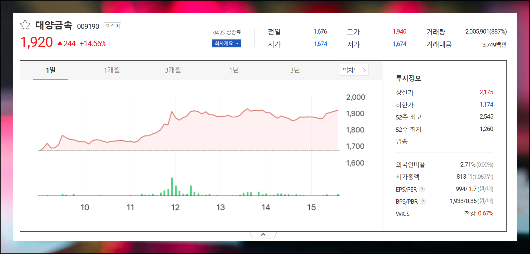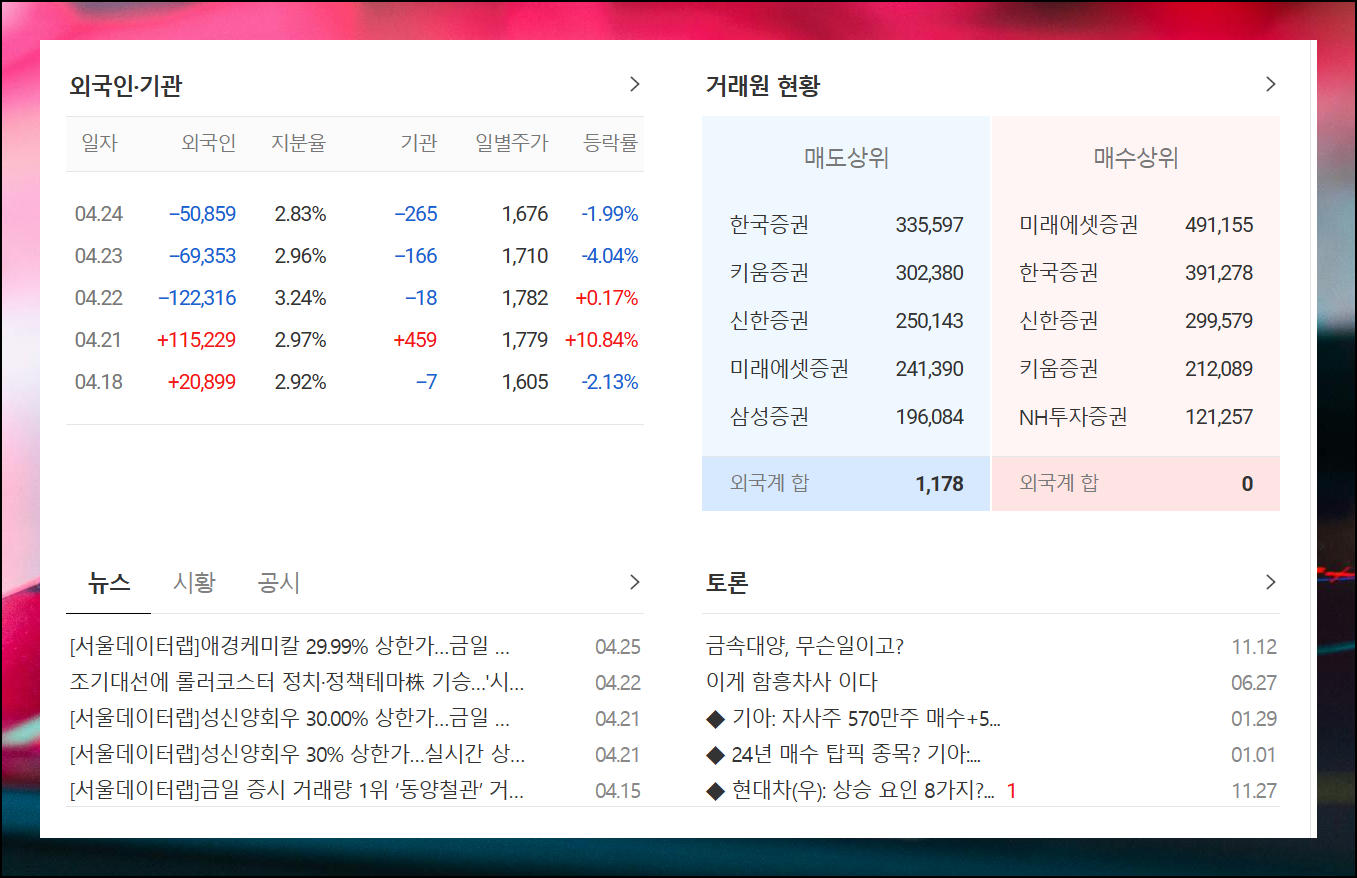특정 주식에 대한 상세한 정보가 필요하다면, 종목명을 클릭해보세요. 확대된 그래프와 함께 투자 정보, 현재가, 뉴스, 공시, 토론, 기업정보 등 종합적인 데이터를 확인할 수 있습니다. 이러한 상세 정보는 기업의 재무 건전성과 성장 잠재력을 평가하는 데 큰 도움이 돼요.