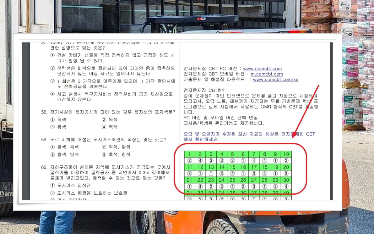 지게차운전기능사 필기 기출문제 무료로 풀기.