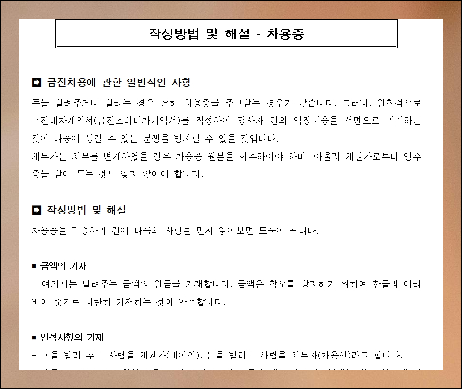 (5) 차용증 관련 작성 조언