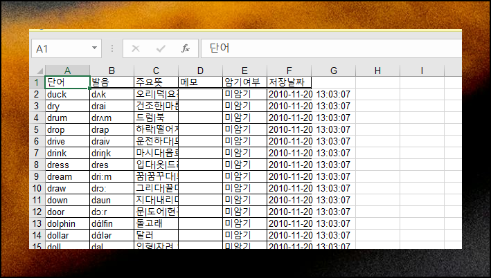 다운로드 받은 엑셀 문서에는 영어 표현, 발음 기호, 의미가 표 형식으로 정리되어 있어요. 이 자료를 활용해 나만의 특별한 학습자료를 만들 수 있답니다. 초등 수준에 맞는 1000개 영어 어휘를 본인의 공부 스타일에 맞게 수정해보세요.