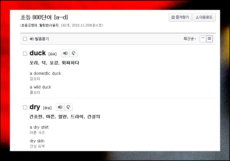 (1) 발음 듣기, 예문 보기 가능