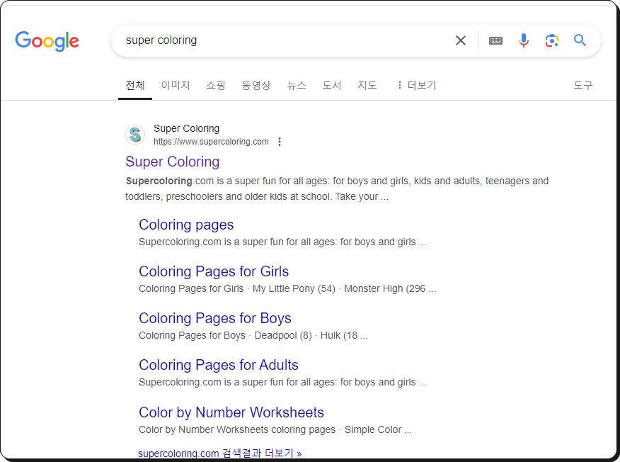 두 번째로 알려드리는 곳의 경우에는 앞서 언급한 온라인으로 컬러링북 색칠하는 서비스를 제공하고 있습니다. "Super Coloring" 사이트인데요. 첫 번째에 비해 더 많은 양의 자료를 제공하고 있습니다. 카테고리 또한 매우 많아서 내 마음에 쏙 드는 컬러링북을 찾기에 용이해요.