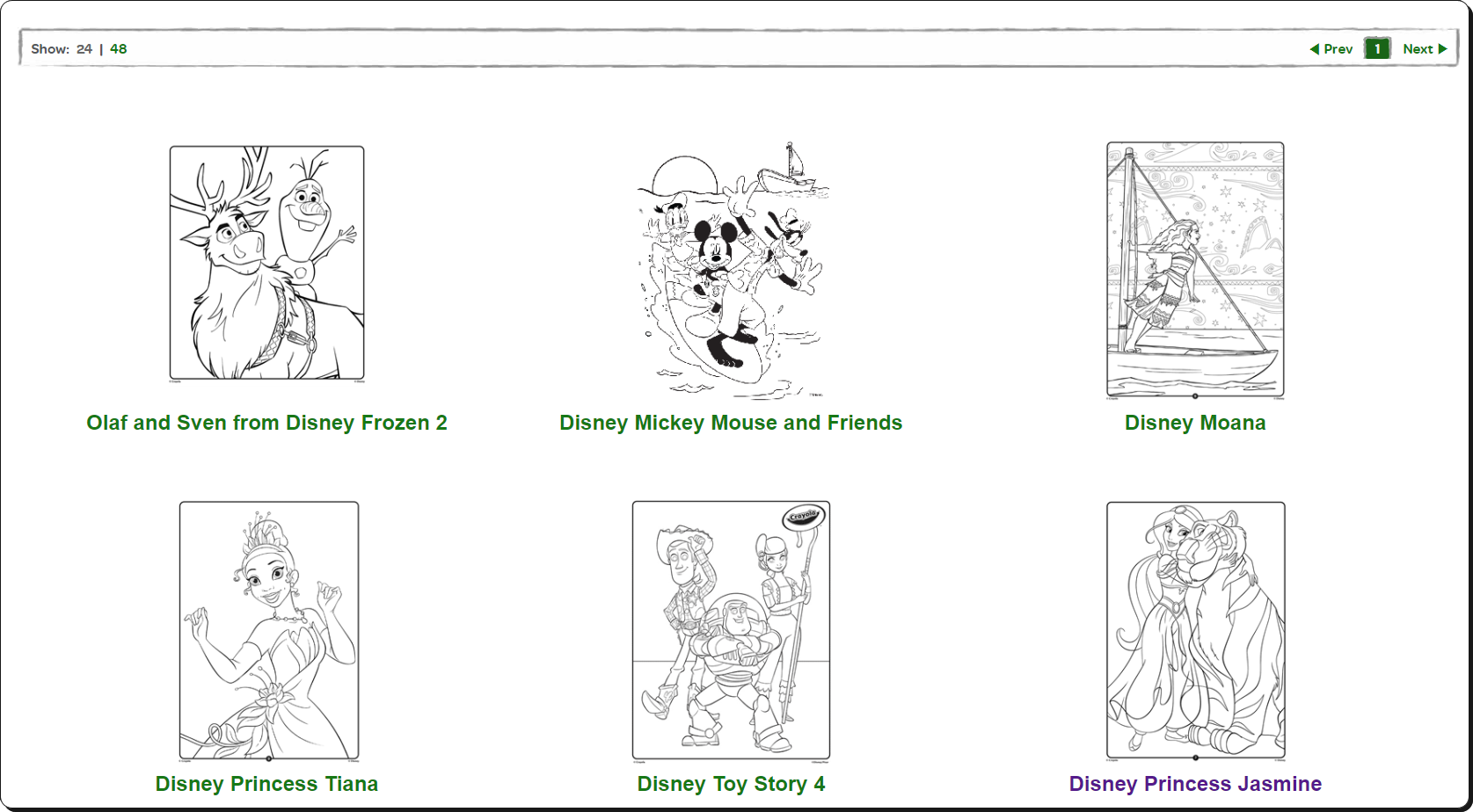 7가지 카테고리를 선택할 수 있는데요. 자신에게 맞는 컬러링북을 찾는 데에 도움이 됩니다. 요즘 아이들은 디즈니 케릭터를 매우 좋아하죠. 이에 따라 디즈니 인물들이 나오는 컬러링북 자료도 이곳에서 제공하고 있습니다.