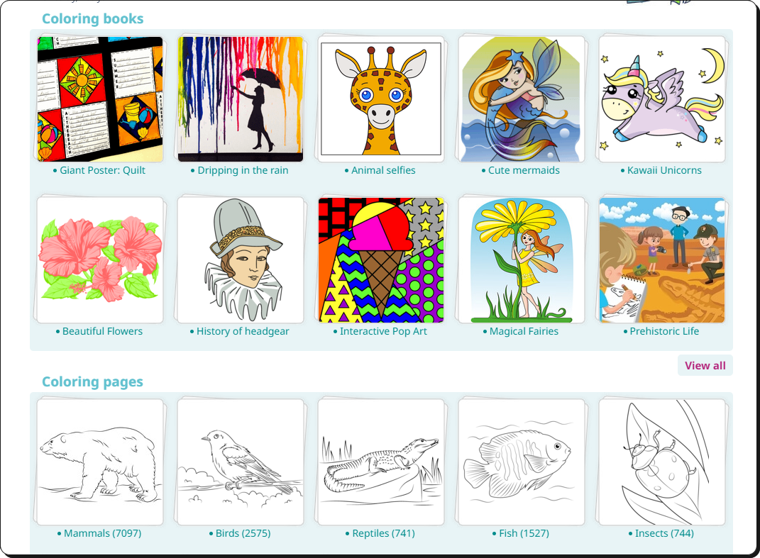 요즘 유아에서 초등학생까지 한 달에 10만원 대의 학습 태블릿을 이용하는 경우가 많습니다. 거기에는 교육 자료도 많지만, 컬러링북 서비스도 제공되고 있어요. 제가 알려드리는 2곳을 이용하면 상대적으로 저렴하고, 교육 자료 중심의 학습 서비스를 선택하는 것이 낫겠다는 생각이 드실거에요. 보시는 바와 같이 고퀄리티의 그리기 자료를 제공하고 있기 때문이죠. 무료다운은 물론이고, 마우스나 손가락, 전자펙을 가지고 그릴 수도 있습니다.